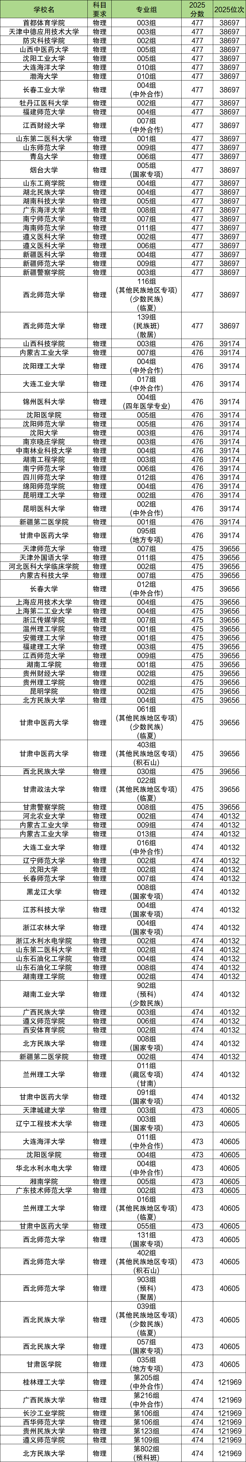 下面是2025年甘肃物理类特控线附近能上的本科大学名单一览表: