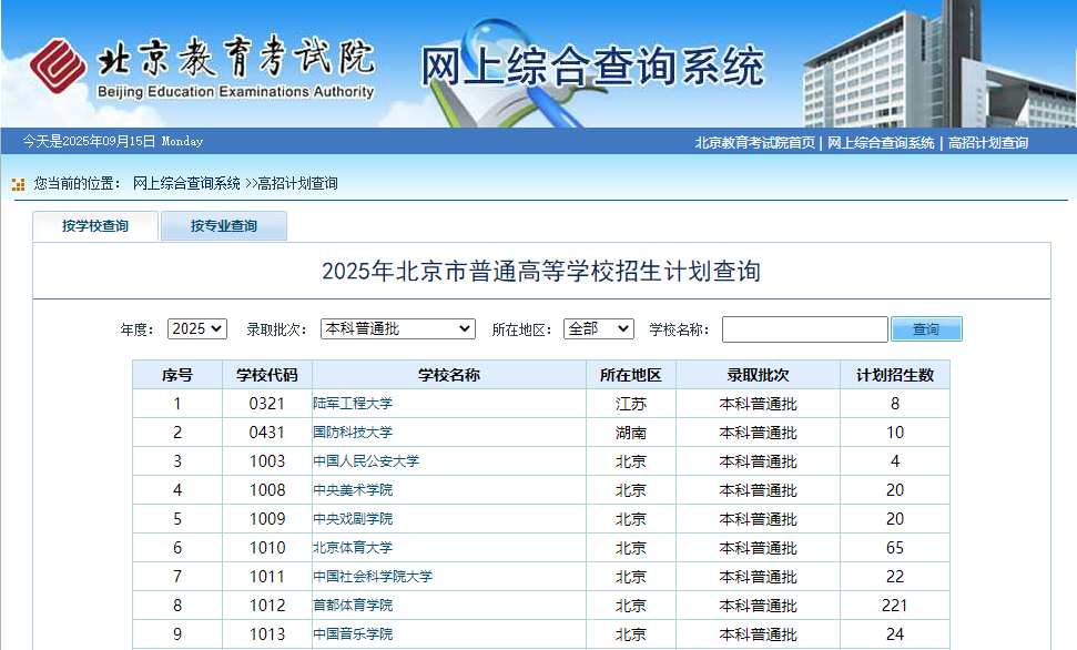 http://query.bjeea.cn/queryService/rest/plan/115