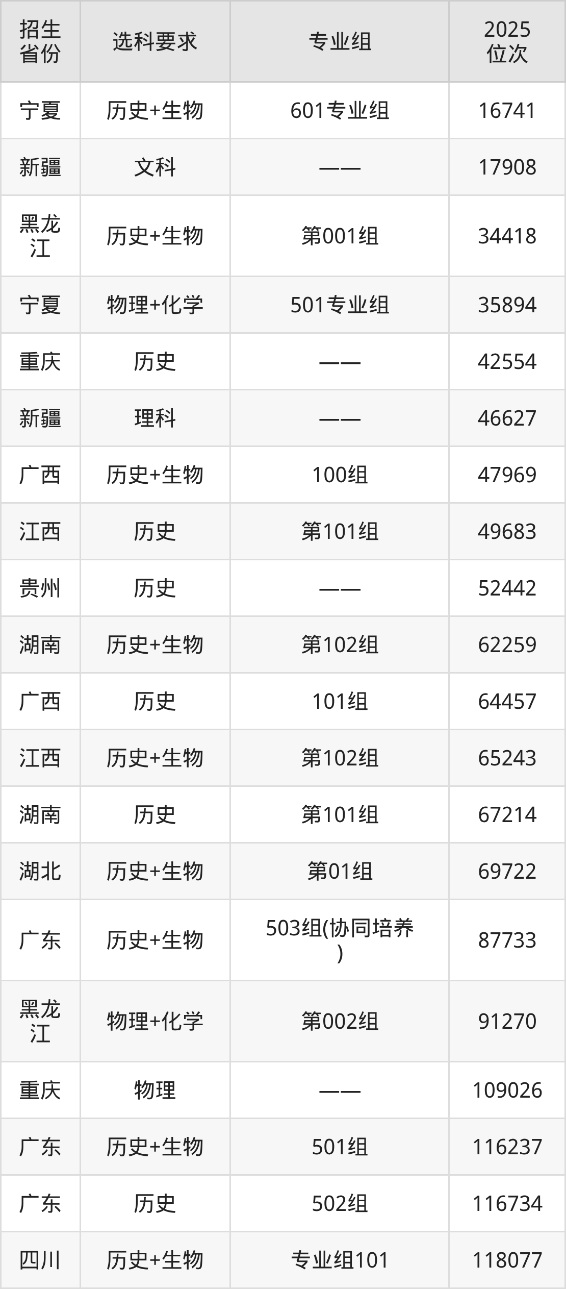 惠州卫生职业技术学院2025年在全国各省的位次差异较大,最高位次是16741位(宁夏历史类)、最低位次是344603位(广东物理类)。各省具体位次请看下图: