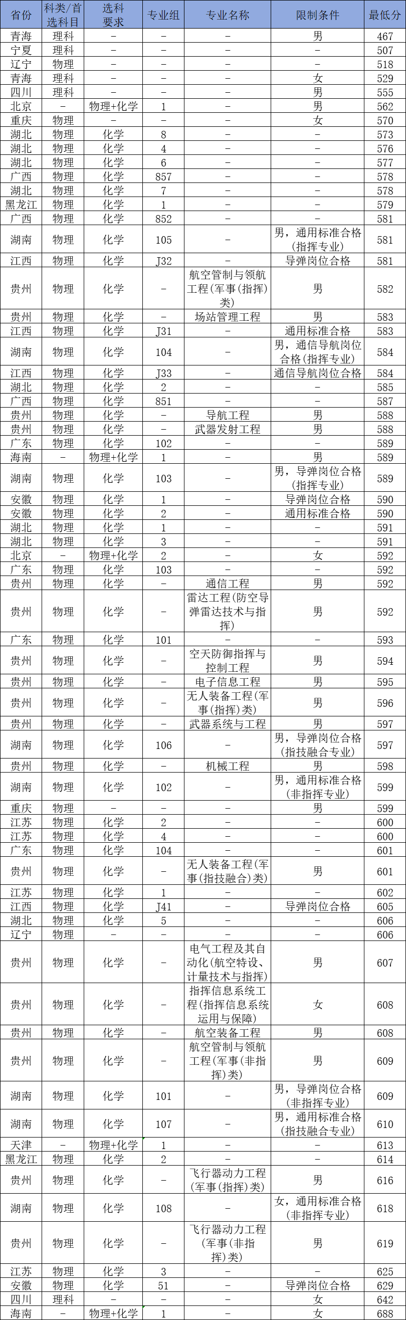 三、空军工程大学录取分数线2024