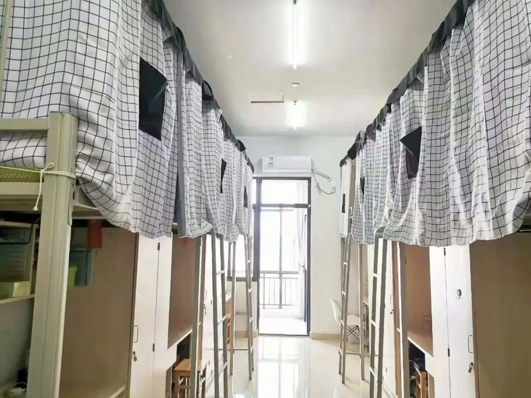 宿舍是六人间上下铺,只有三栋新楼是四人间,有独立卫生间、上床下桌、有空调。
