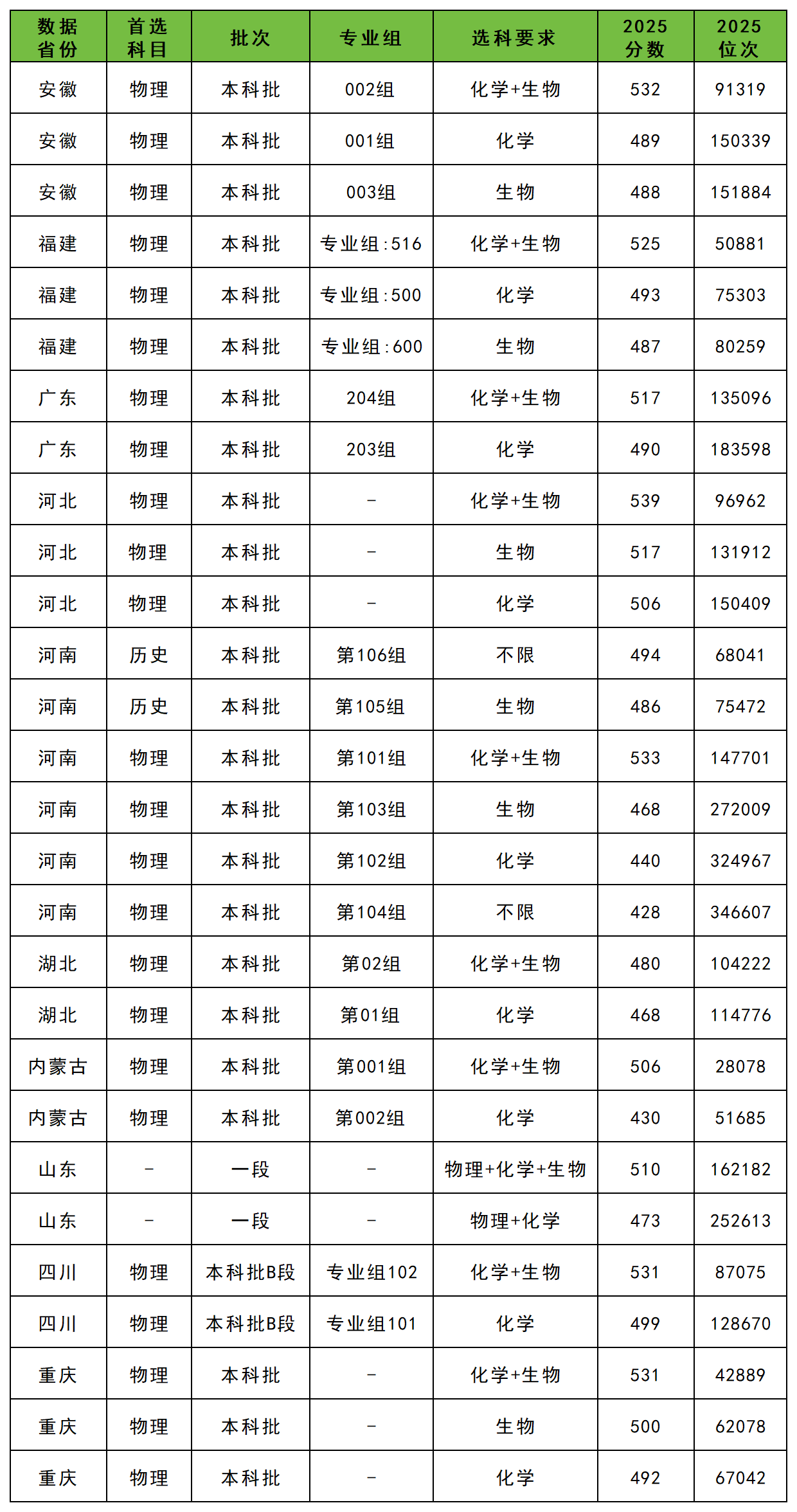 2025年豫北医学院在各省的完整录取分数如下: