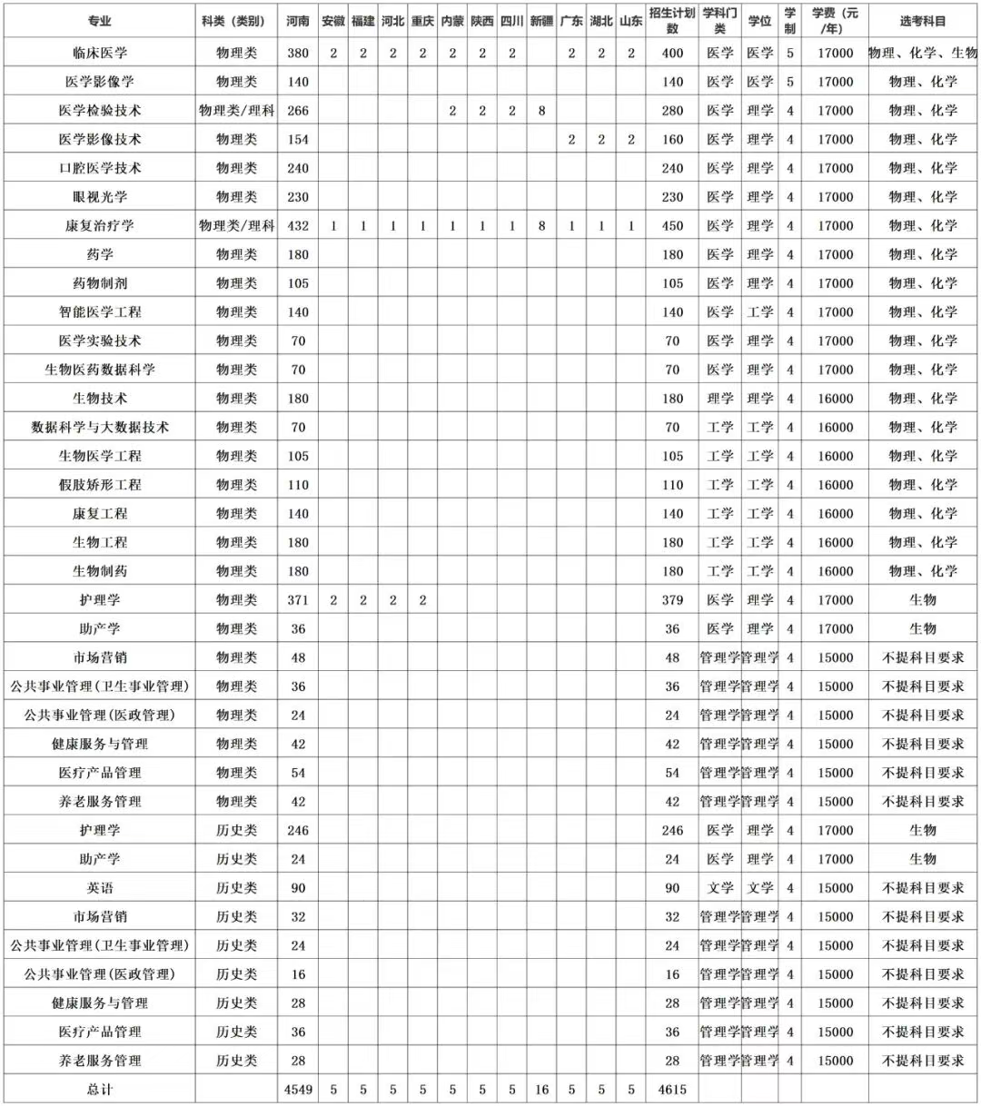 2025年共招生4615人。其中河南招生4549人。