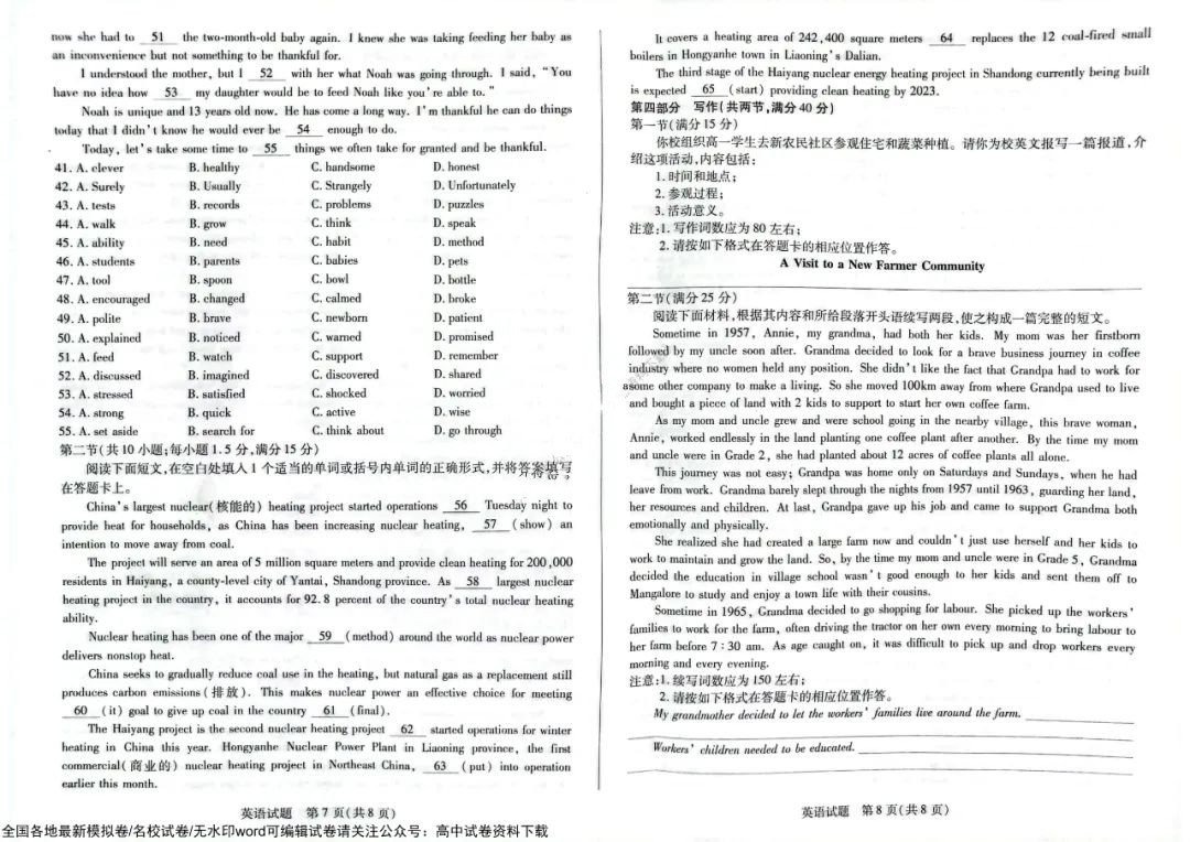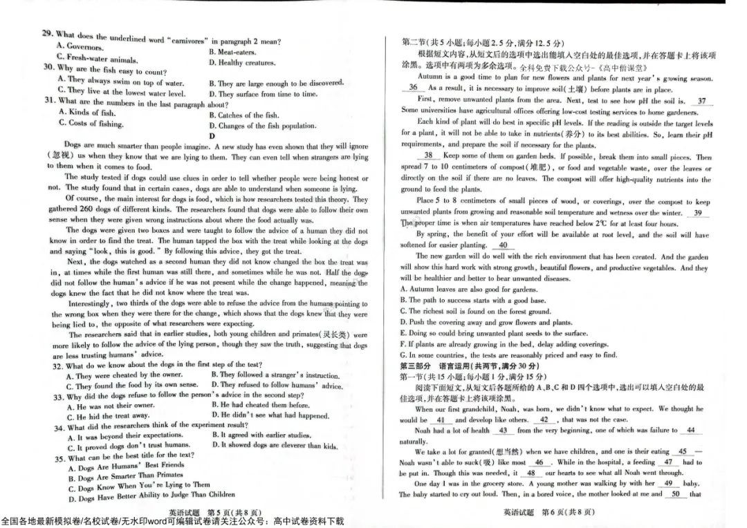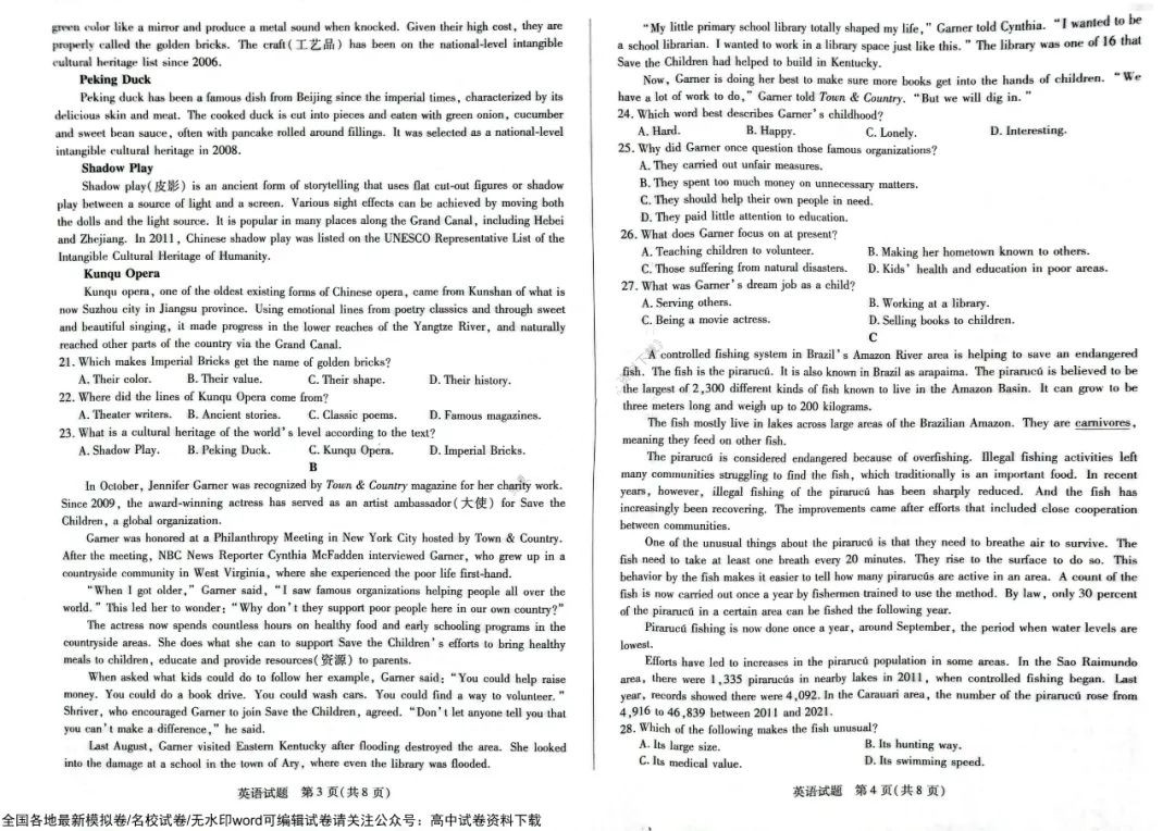 天一大联考2022-2023高一期末考英语试卷及答案汇总
