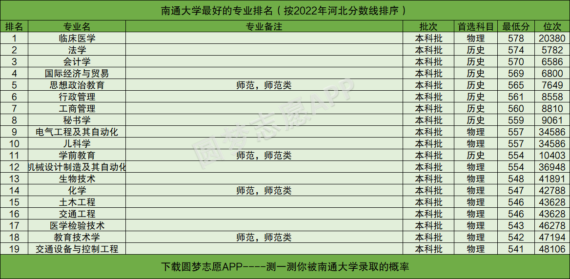 友情提醒:下载圆梦志愿APP,可查阅南通大学在你的高考省份各专业的录取分数线、位次排名。(各大手机应用市场均可下载圆梦志愿APP)