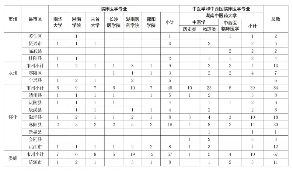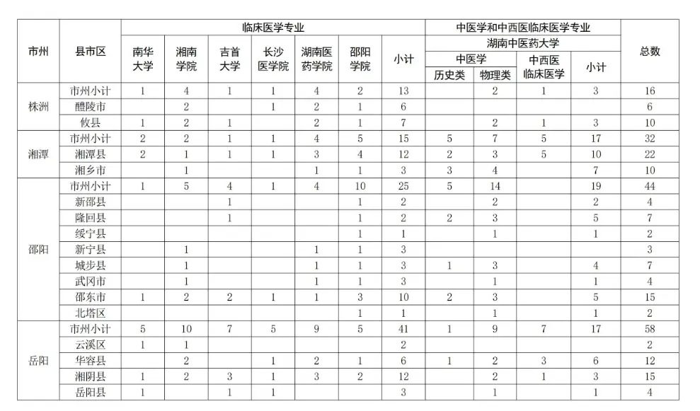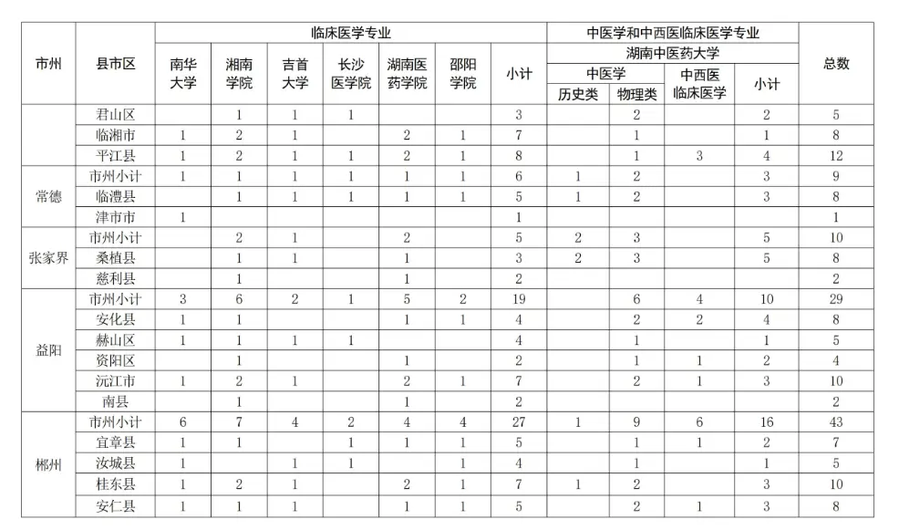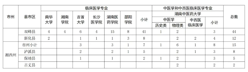 2025年湖南定向医学生招生院校一共有7所,包括南华大学、吉首大学、湘南学院、长沙医学院、湖南医药学院、邵阳学院、湖南中医药大学。