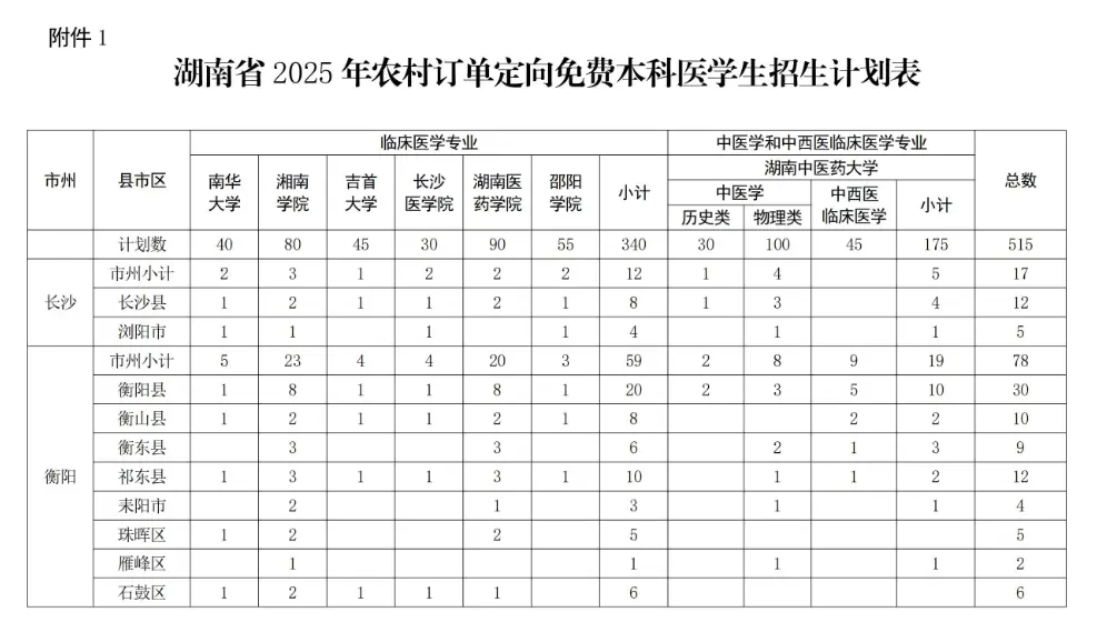 2025年湖南医学定向生实行定向招生、定向就业政策,招生计划总人数为515名,招生院校包括南华大学、吉首大学、湘南学院、长沙医学院等。报考条件包括:参加高考、身体要求符合要求、承诺定向就业至少6年等。