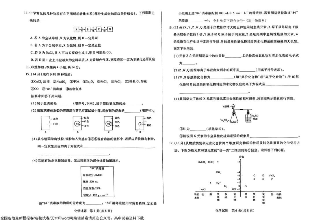 天一大联考2022-2023高一期末考化学试卷及答案汇总