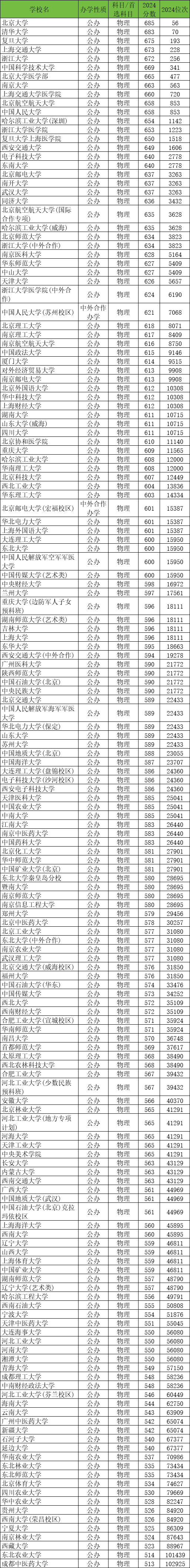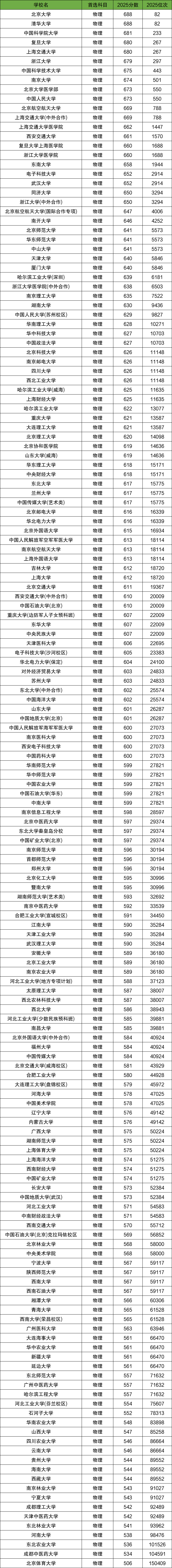 下面是录取分数线最低的物理类双一流大学名单一览表: