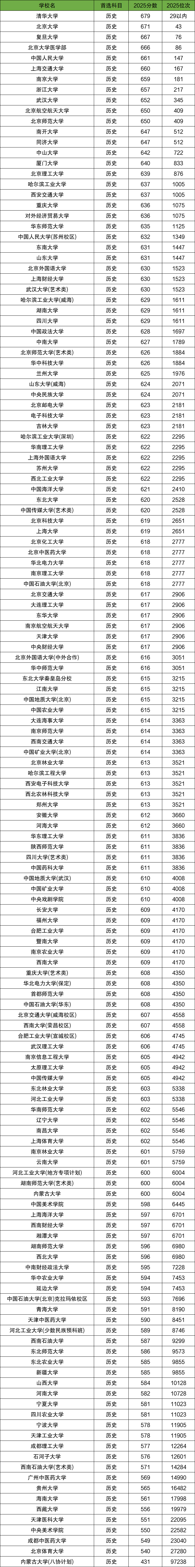 下面是录取分数线最低的历史类双一流大学名单一览表: