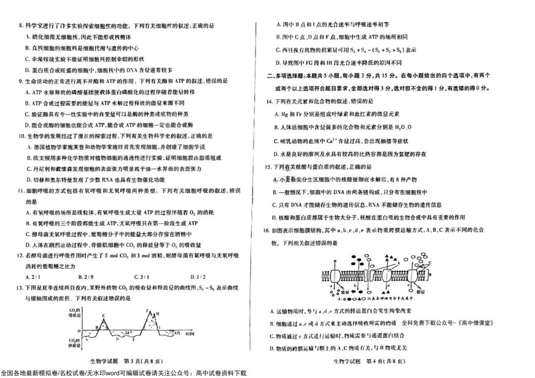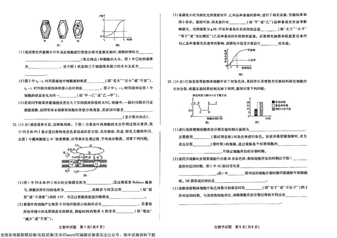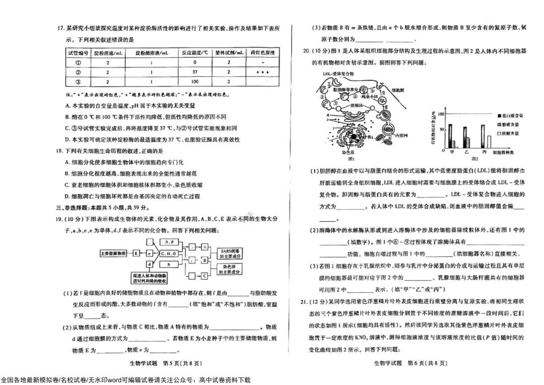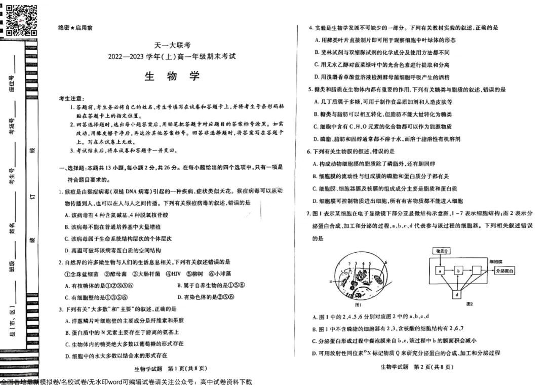天一大联考2022-2023高一期末考生物试卷及答案汇总