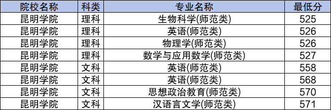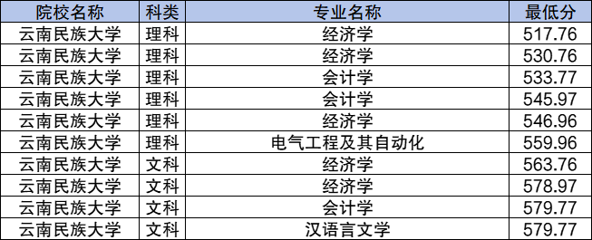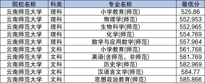 三、2024年云南地方专项计划录取分数线