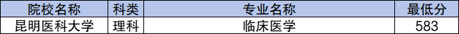 学校地方专项计划理科最低分数线是583分,对应的招生专业是临床医学。
