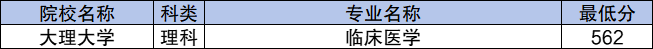 学校地方专项计划理科最低分数线是562分,对应的招生专业是临床医学。