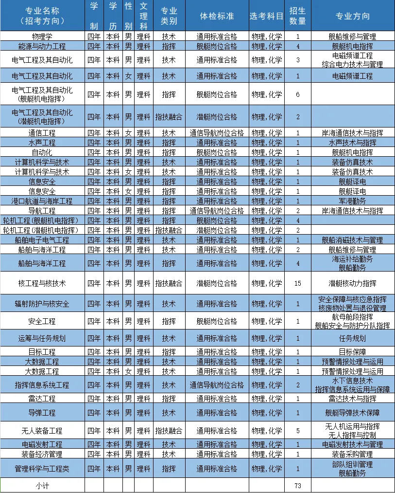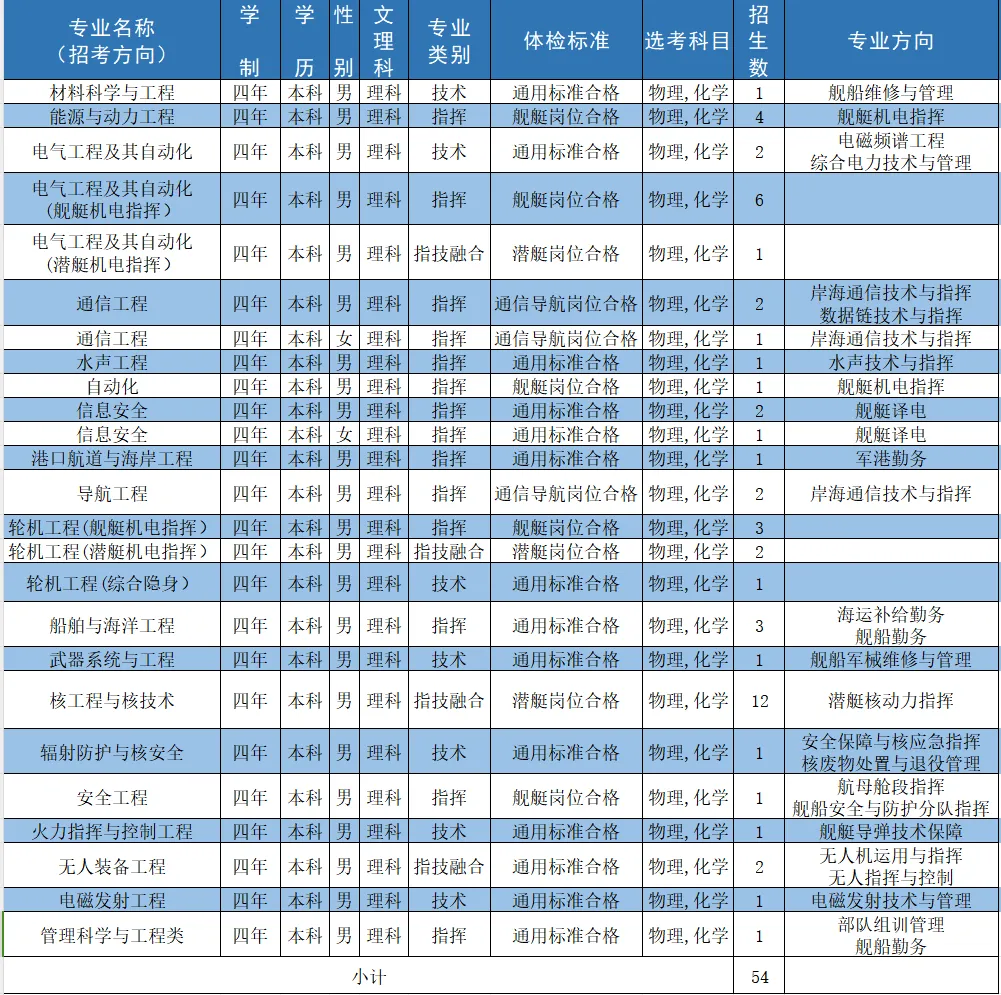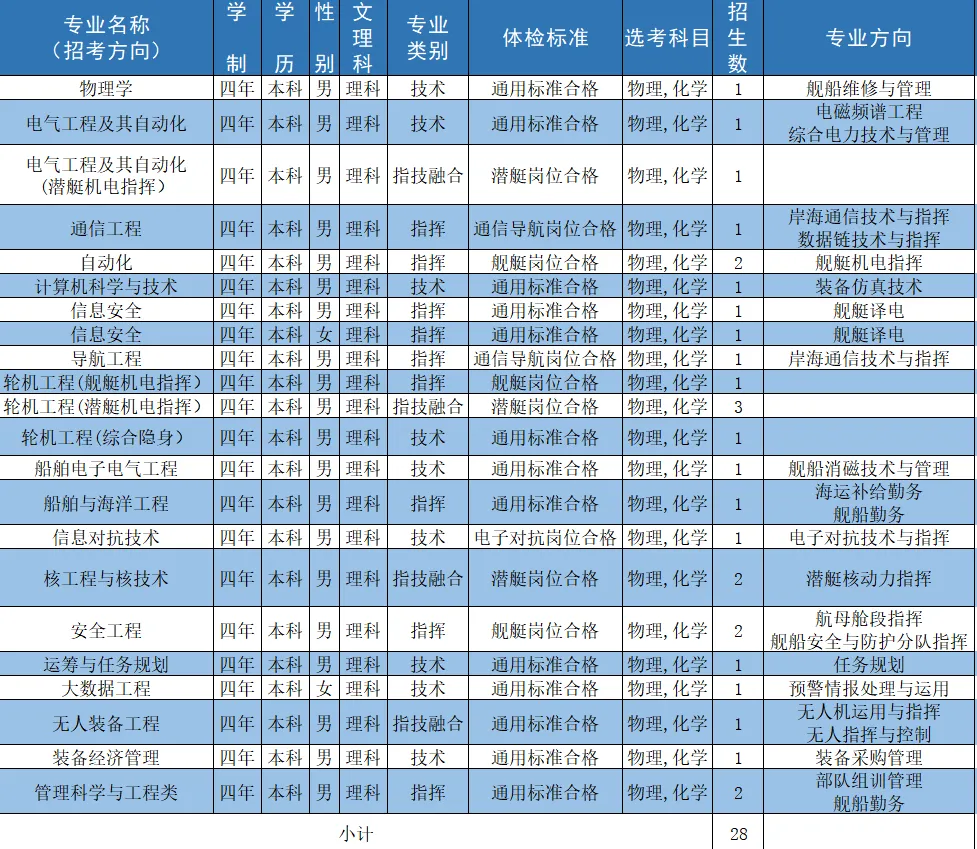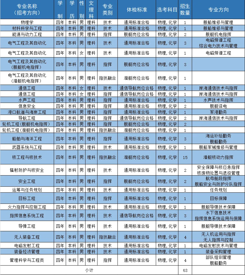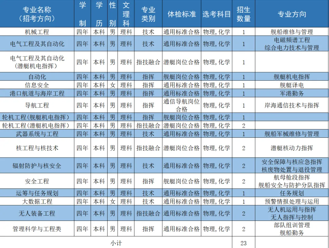 二、海军工程大学2024招生计划