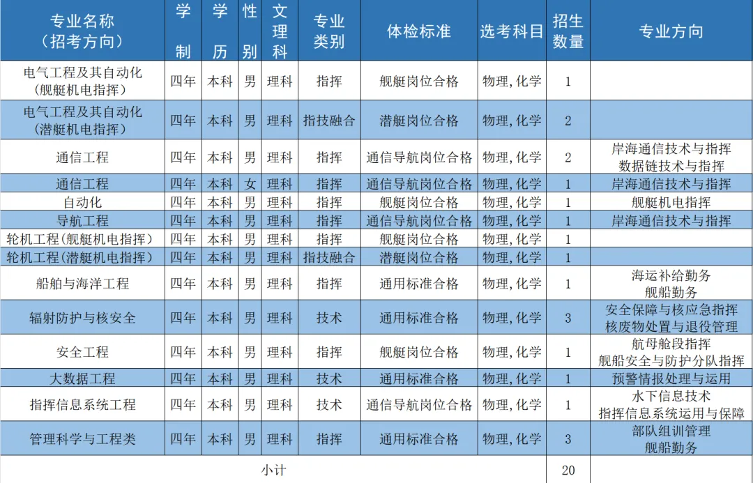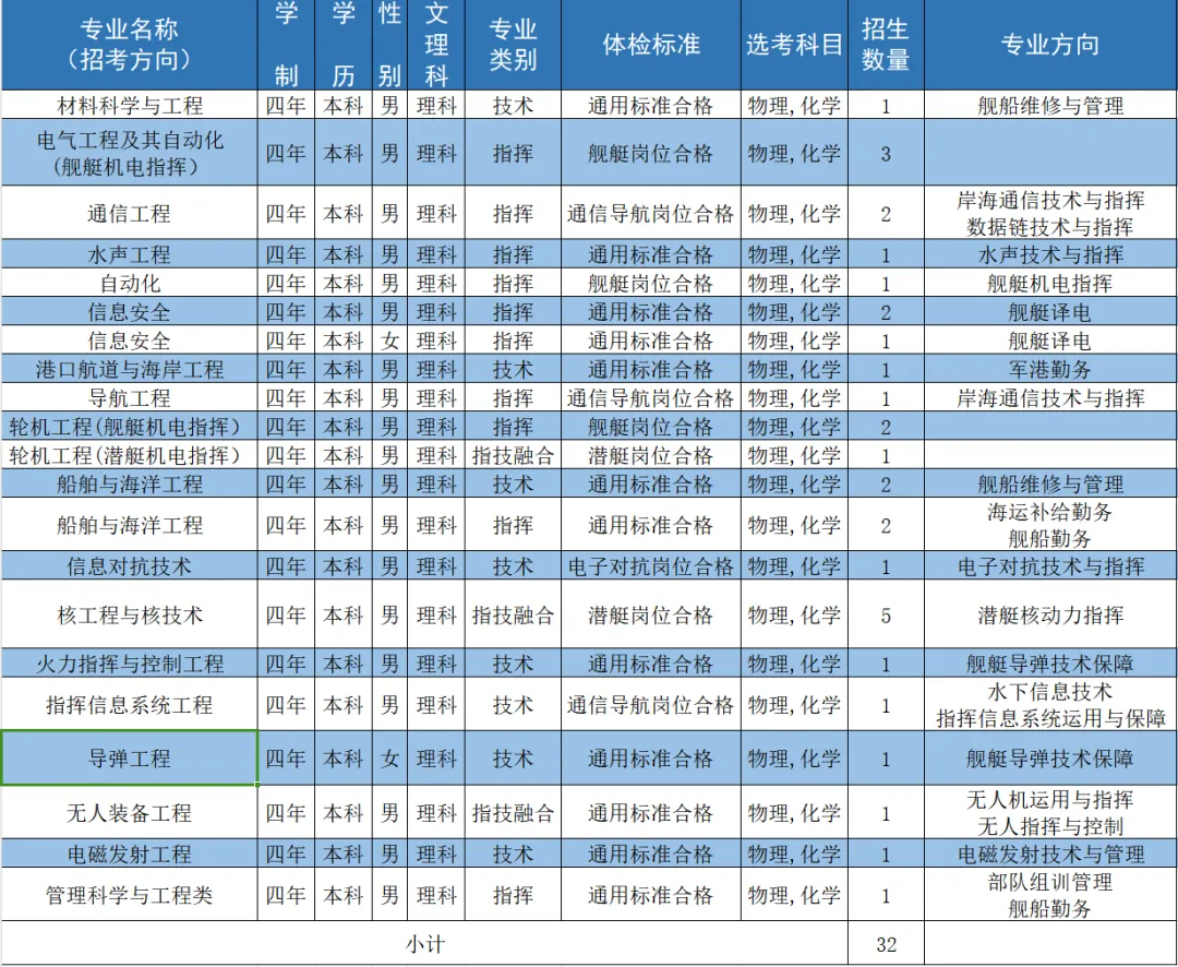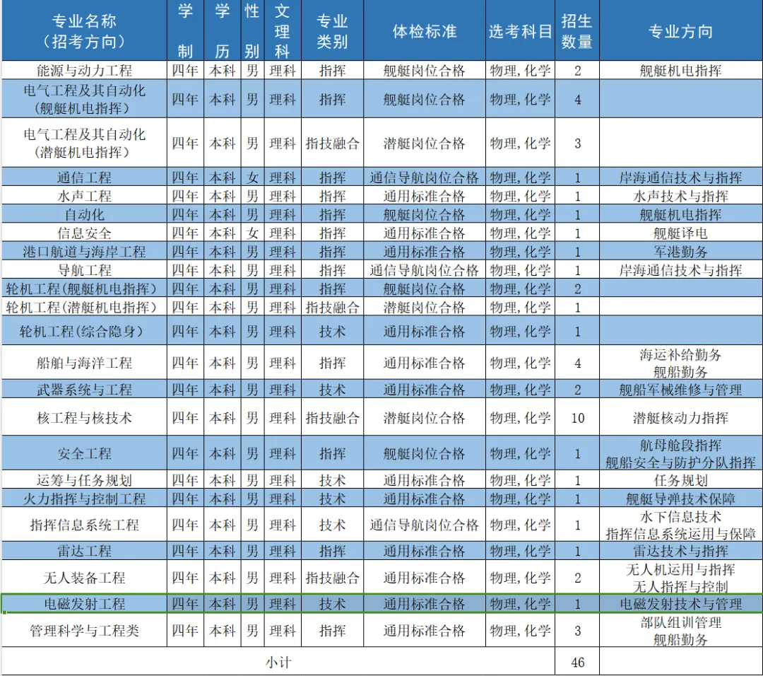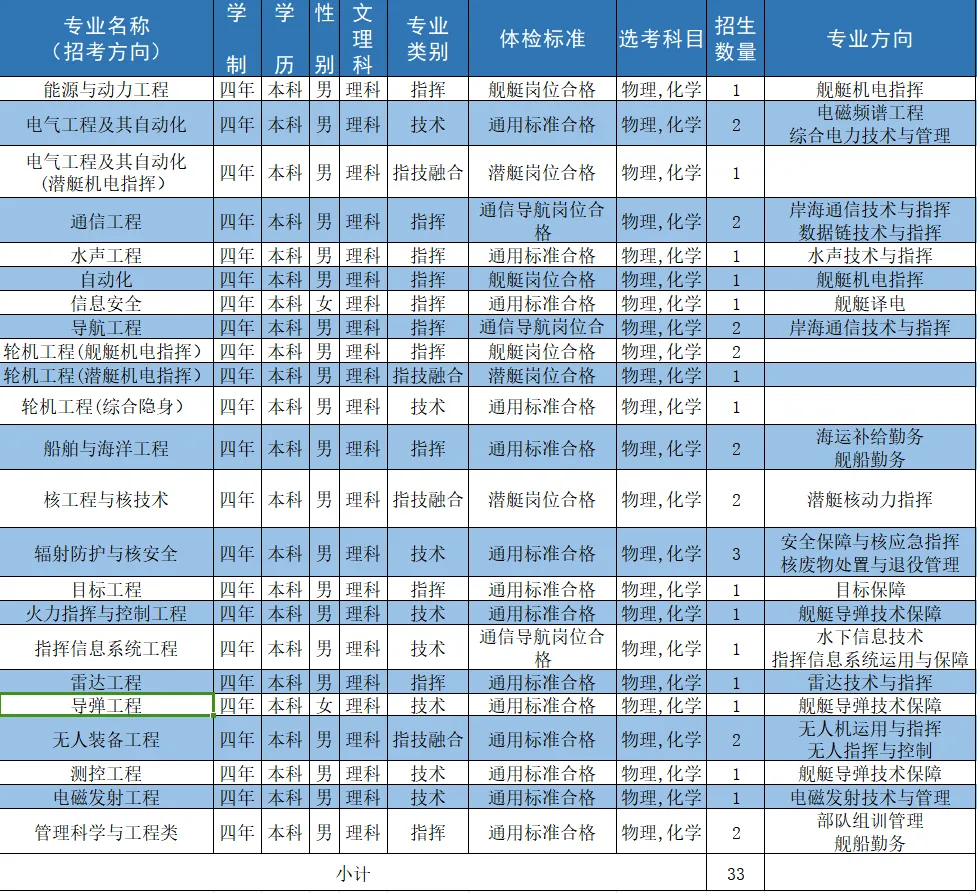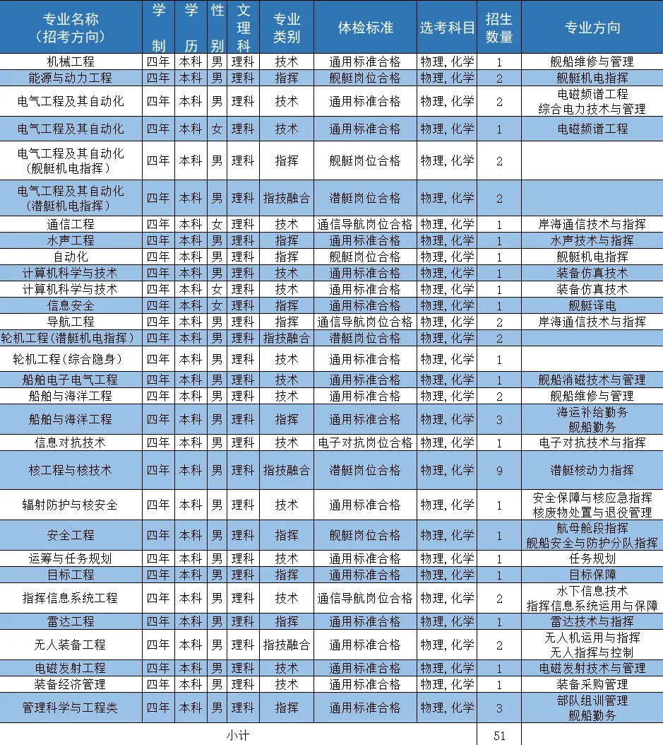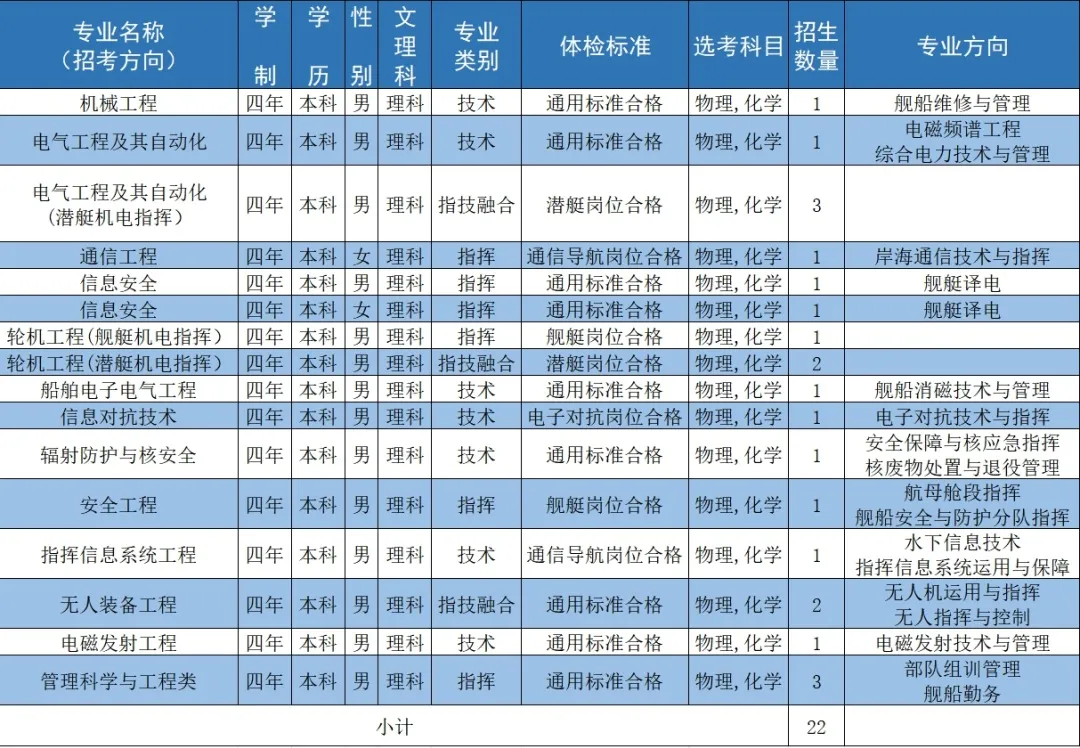 二、海军工程大学2024招生计划