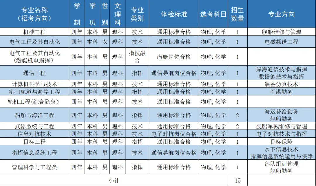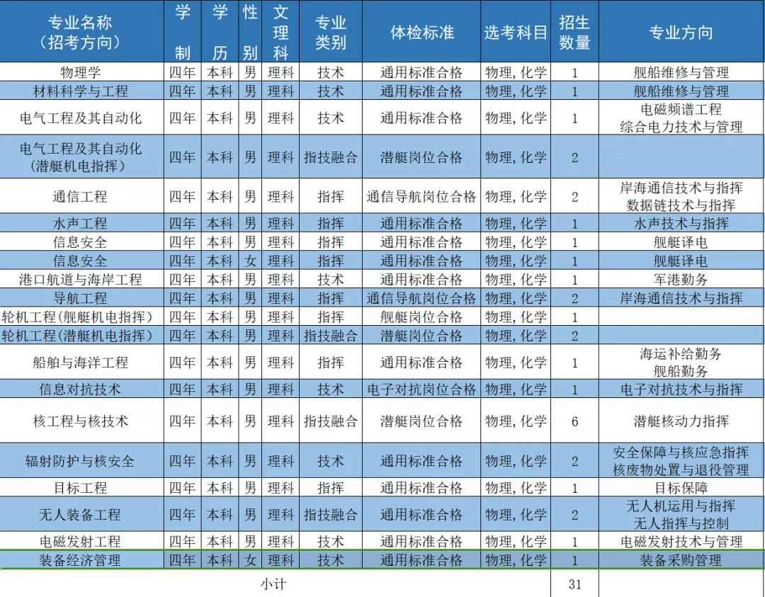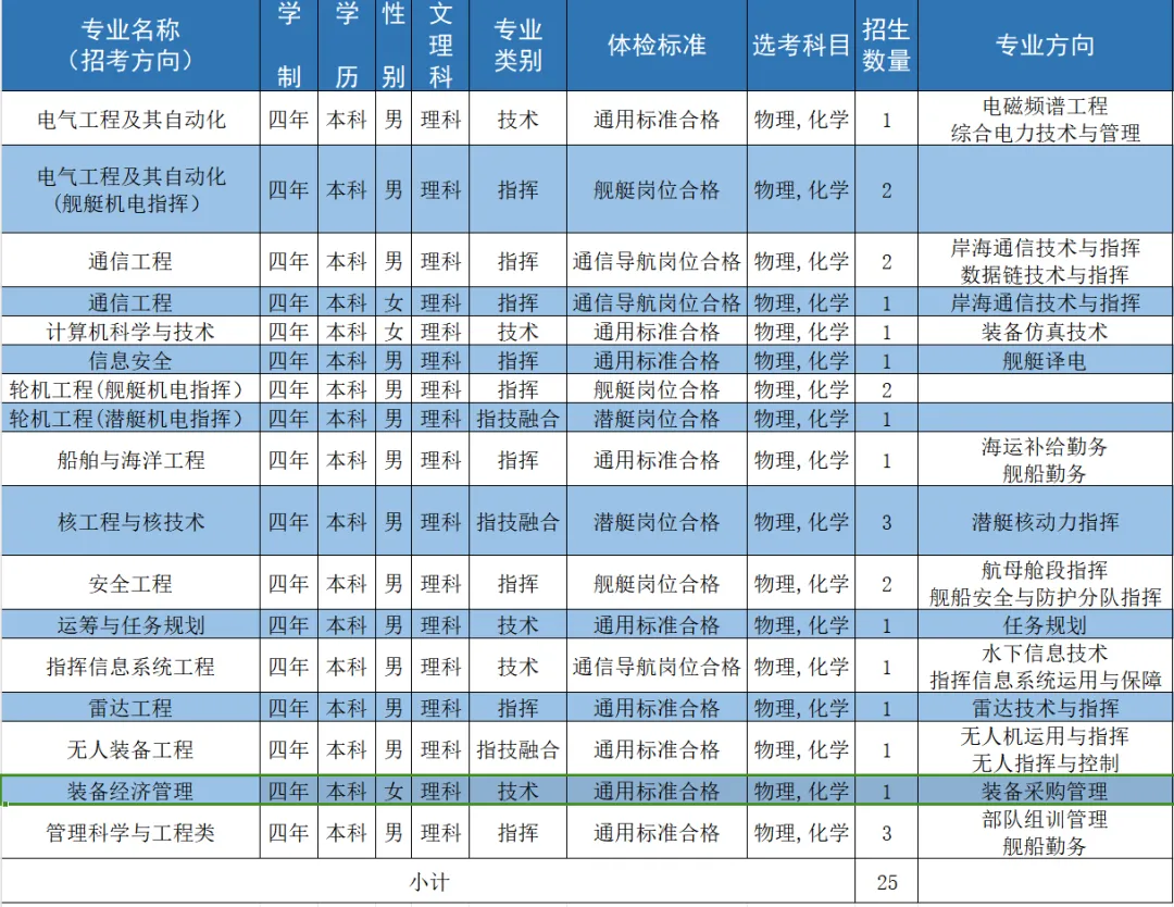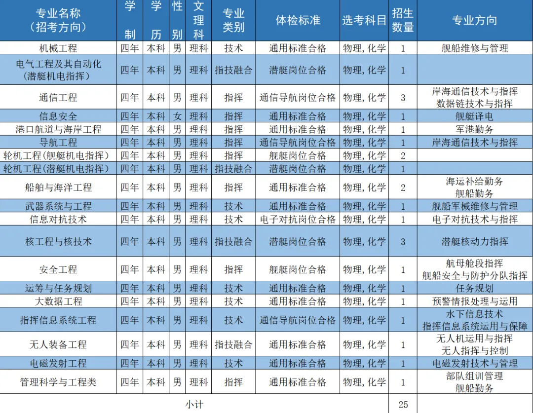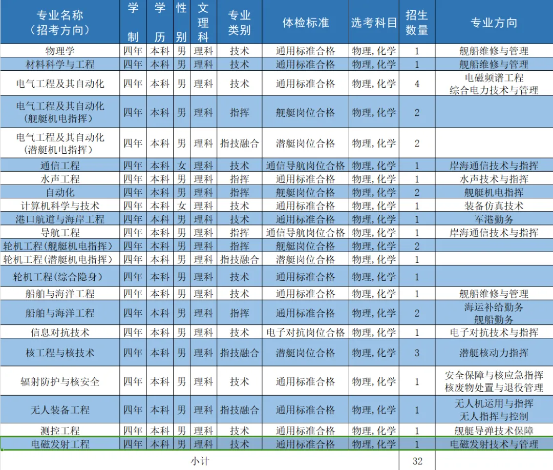 二、海军工程大学2024招生计划