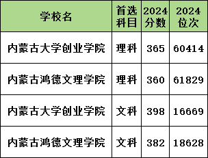 内蒙古内最难考的民办二本是内蒙古大学创业学院,2024年文科最低分398分、理科最低分365分。