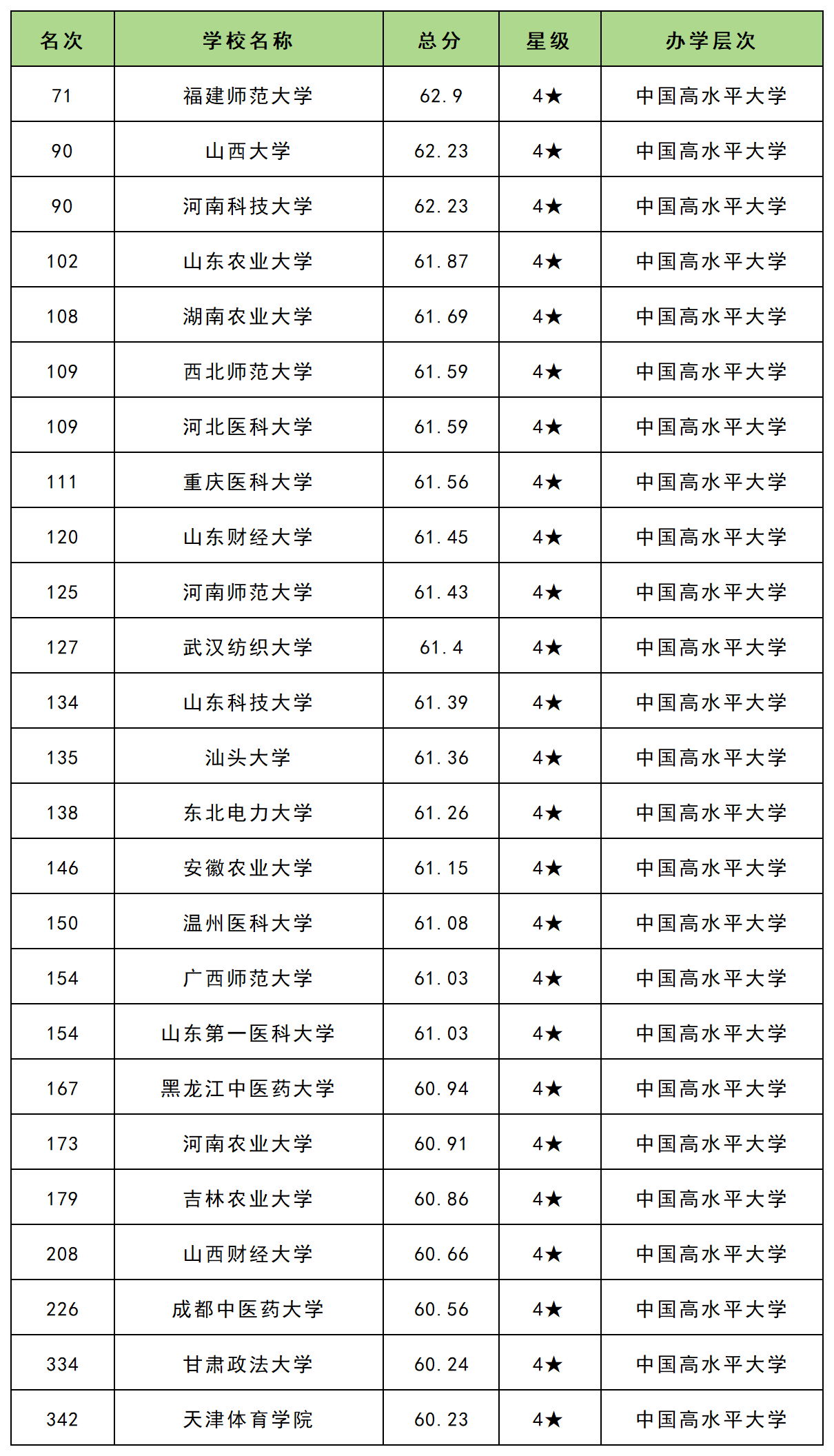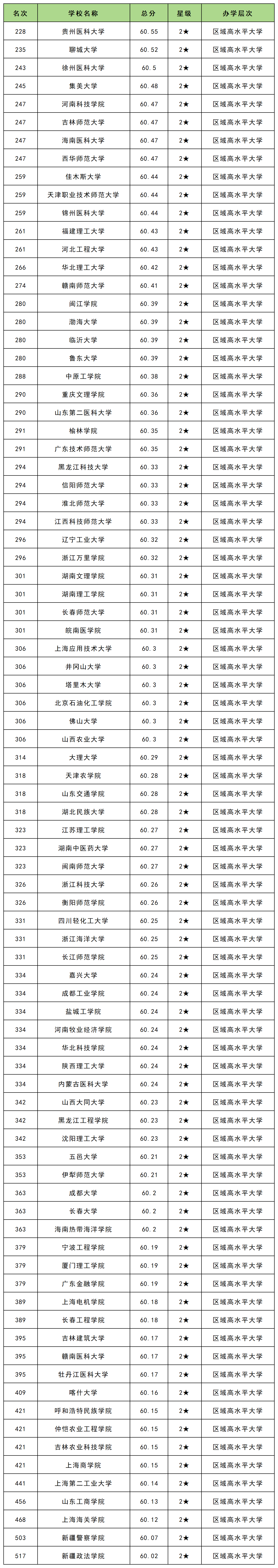 第四梯队:区域高水平大学(2星级)