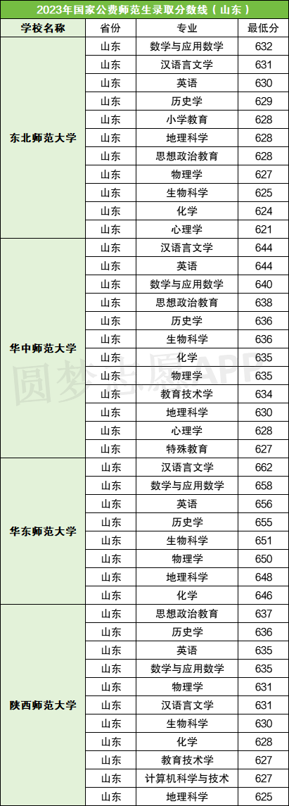 以国家公费师范生在山东的录取线为例,在一段方面,各部属师范院校的录取线在621-662分之间。关于各院校专业在山东的具体录取分数线,以及山东地方公费师范生的分数线,本文都进行了整理,供查阅。