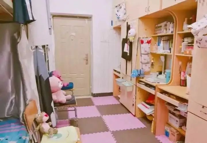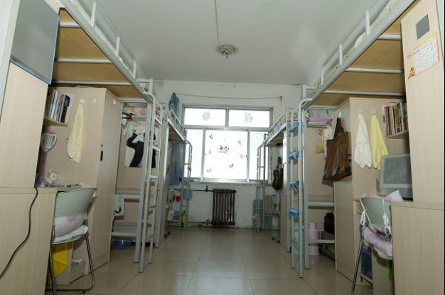 宿舍一般为四人间,有上下铺或上床下桌等类型,每人配有家具一套,包括:电脑桌、衣柜和床。