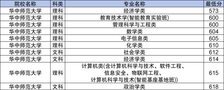 学校国家专项计划文科最低分数线是612分,对应的招生专业是社会学类;理科最低分数线是573分,对应的招生专业是经济学类。