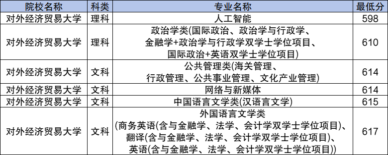 9、对外经济贸易大学:文科最低614分,理科最低598分