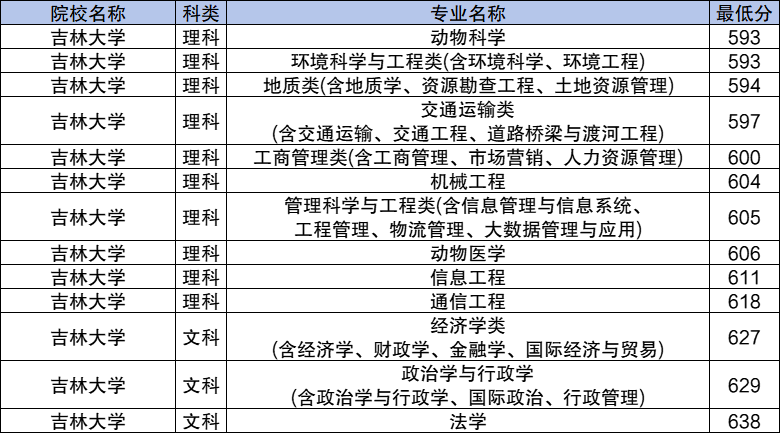 学校国家专项计划文科最低分数线是627分,对应的招生专业是经济学类(含经济学、财政学、金融学、国际经济与贸易);理科最低分数线是593分,对应的招生专业是动物科学。