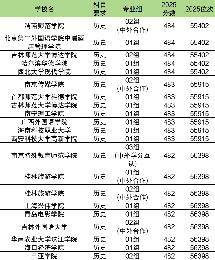 历史类:本科批分数线为482分,对应位次是56398名。