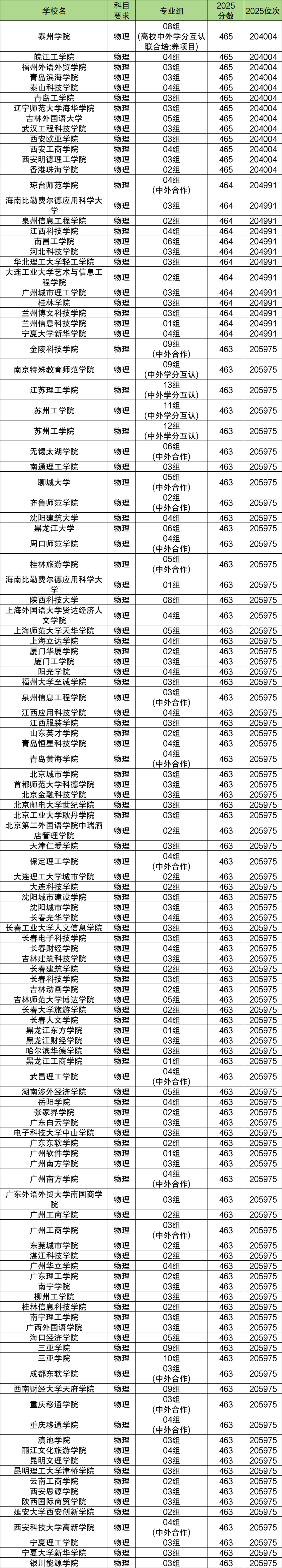 2025年江苏物理类本科批分数线附近(463分到465分)能上的本科院校一共有114个,可报考的大学主要有国家重点、省重点等院校,多数为双万计划院校。部分学校名单示例: