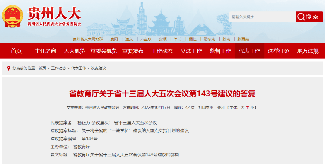 贵州省人大在答复中提到,贵州省教育厅将会充分参加即将公布的第五轮学科评估结果,对学科评价机制进行完善,建立学科专业群的动态调整机制进一步优化学科布局。