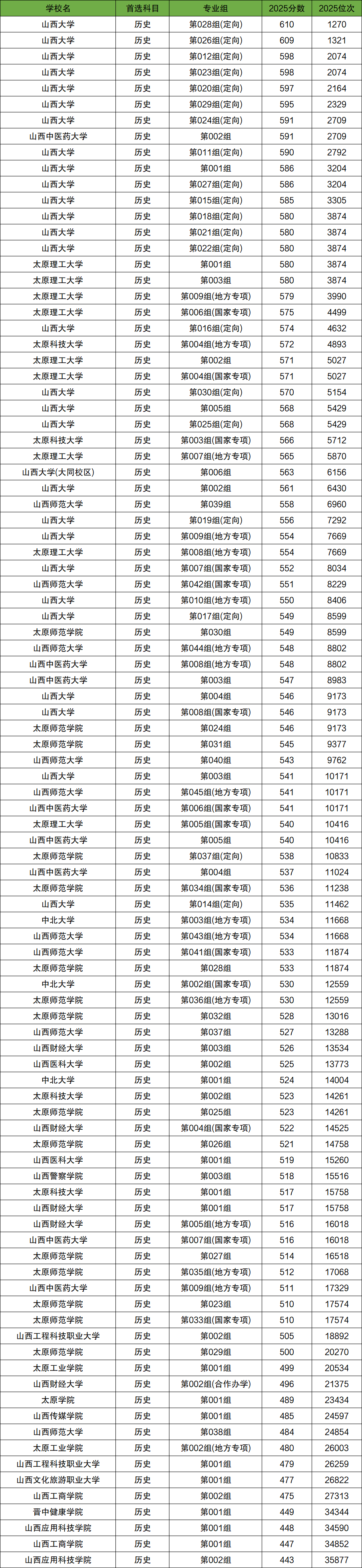 如下仅为各位整理了2025年太原各大学历史科目考生的最低分数线一览表,供大家参考: