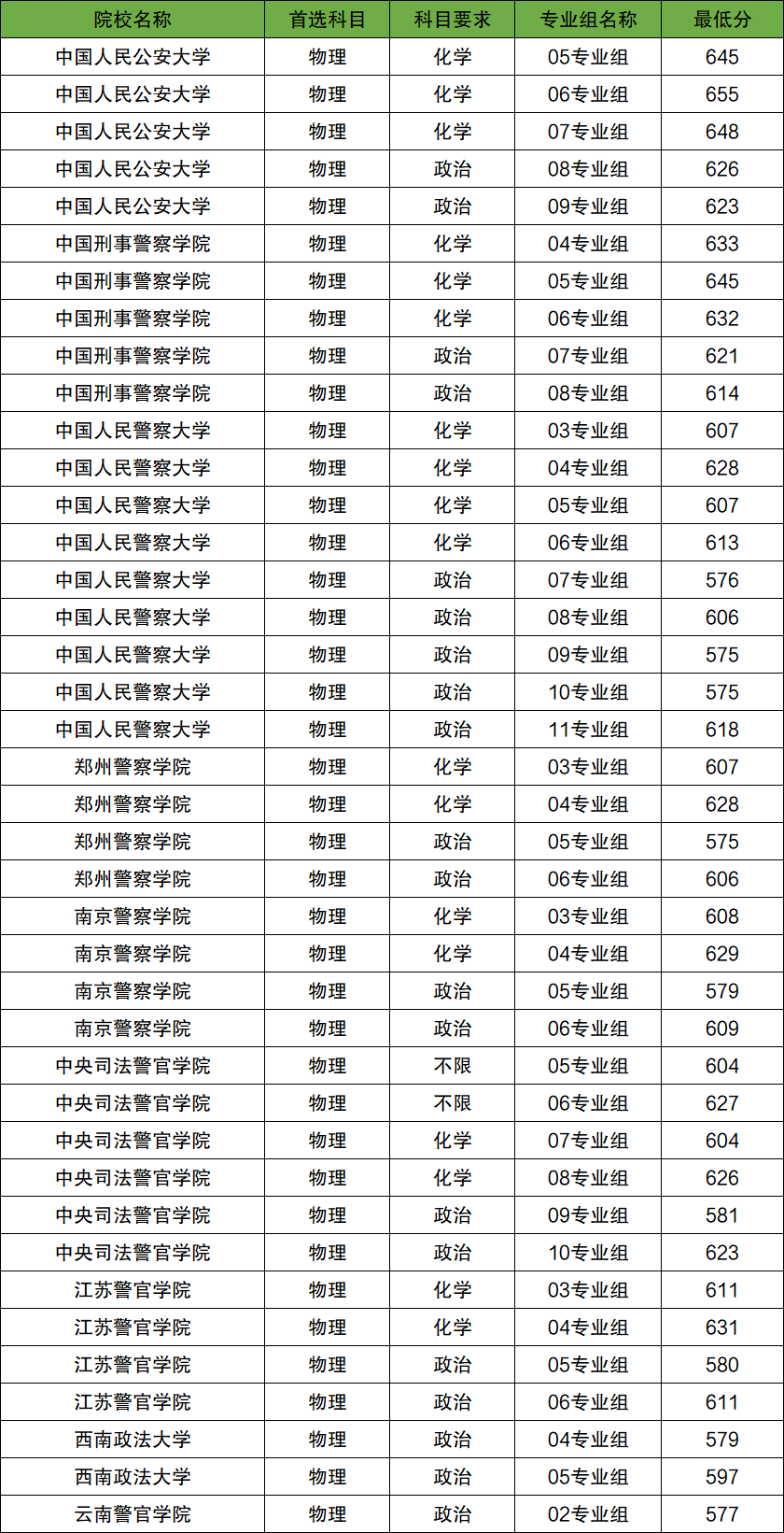 中国人民公安大学06专业组(化学),2025年投档最低分655分;