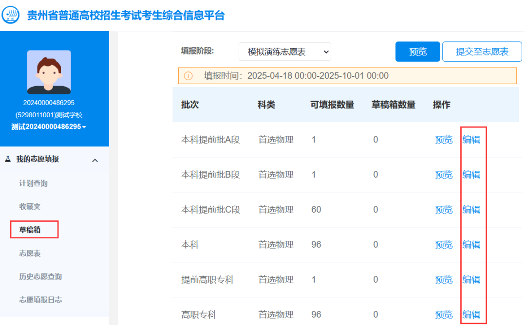 本次志愿模拟填报工作是2025年贵州省考生唯一一次熟悉志愿填报系统的机会,填报结果不会对你的高考录取产生任何影响,仅仅是为了熟悉系统,建议一定参加。