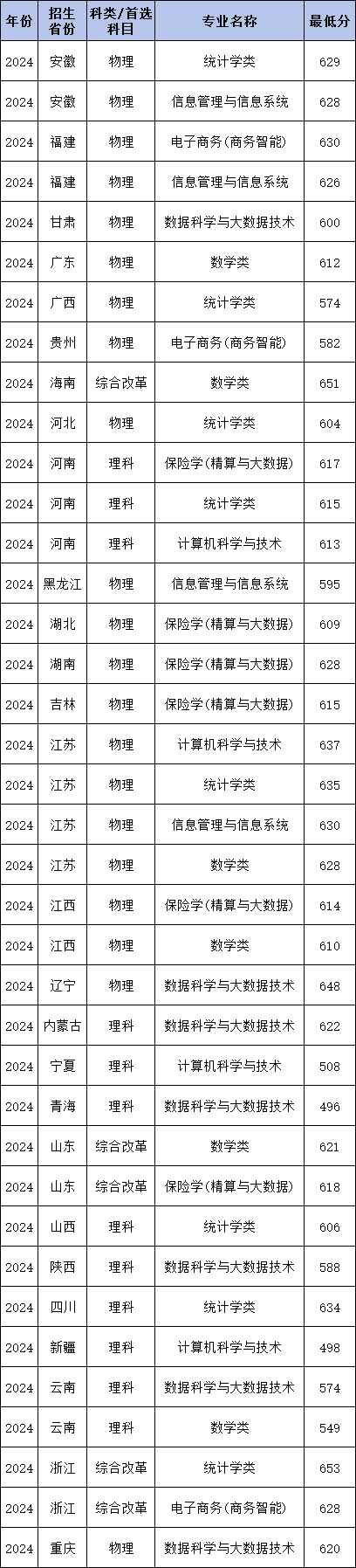 2024年上海财经大学高校专项计划在甘肃录取最低分物理类为600分,物理组收分最低的专业为数据科学与大数据技术。