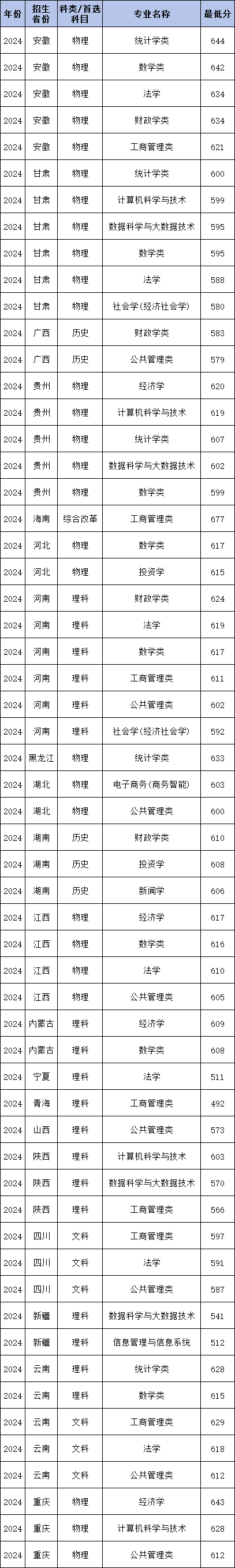 2024年上海财经大学国家专项计划在贵州录取最低分物理类为599分,物理组收分最低的专业为数学类。