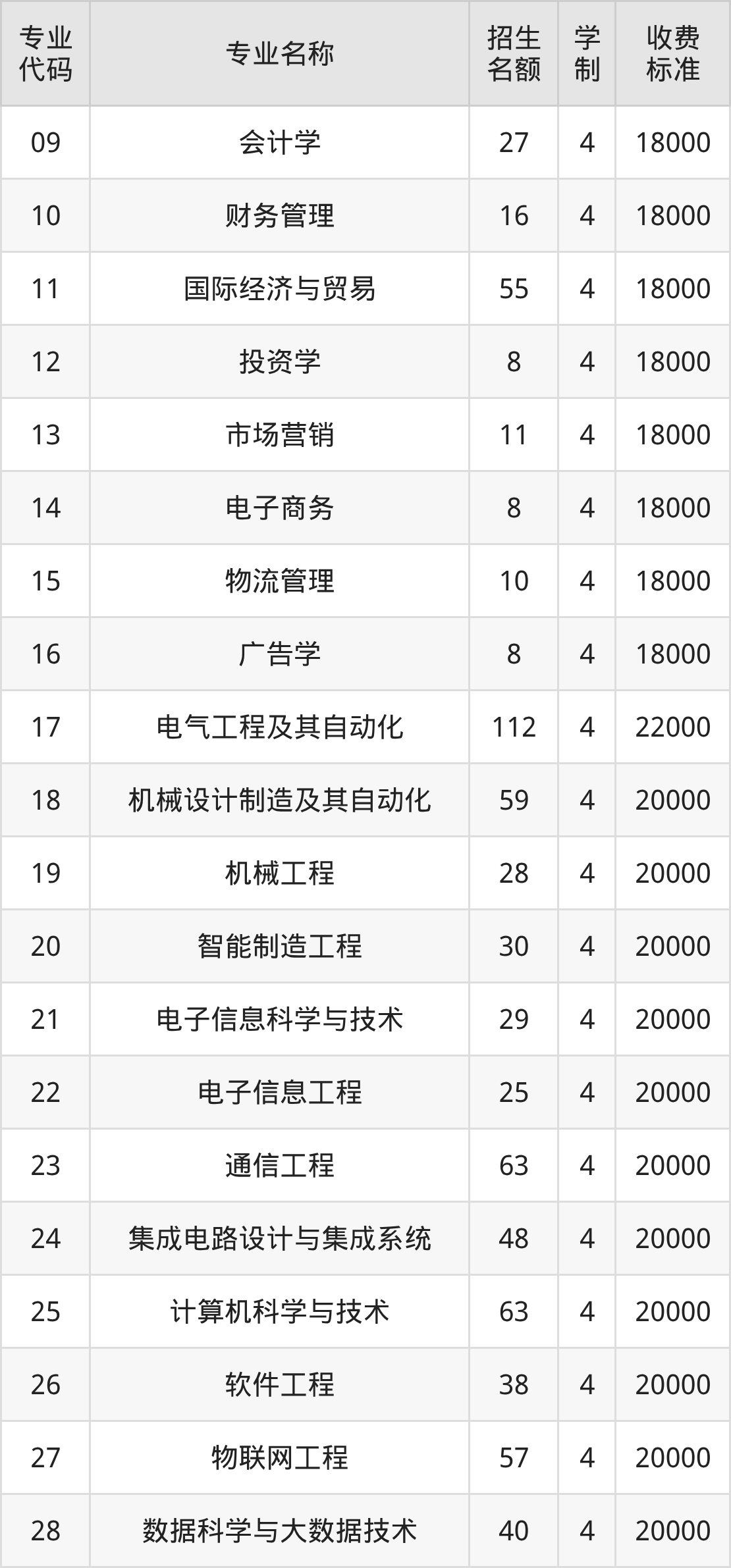 | 专业 代码 | 专业名称 | 招生 名额 | 学 制 | 收费 标准 |