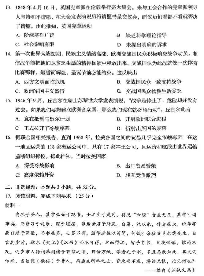 注意:因为本次新高考适应性考试历史、化学、生物、思想政治、物理、地理6门科目是由各省单独出题,所以各省除语数外科目以外,其余科目的试题都不一致,本文就只整理出四川历史具体的试卷及答案,仅供四川考生参考。
