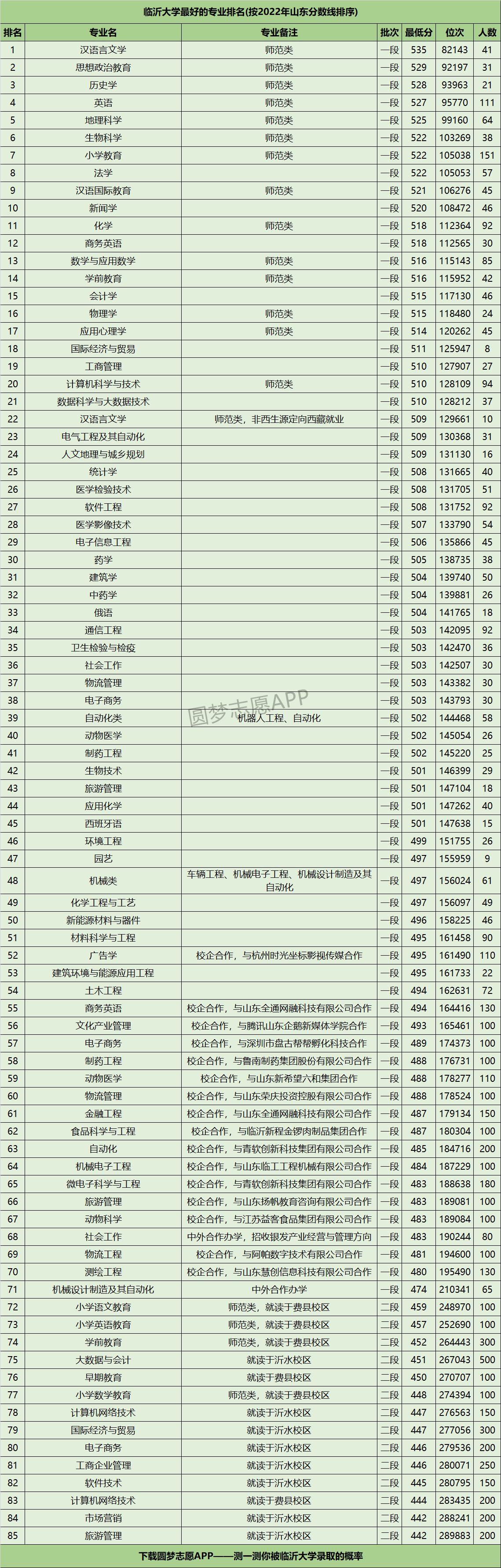 友情提醒:下载圆梦志愿APP,可查阅临沂大学在你的高考省份各专业的录取分数线、位次排名。(各大手机应用市场均可下载圆梦志愿APP)
