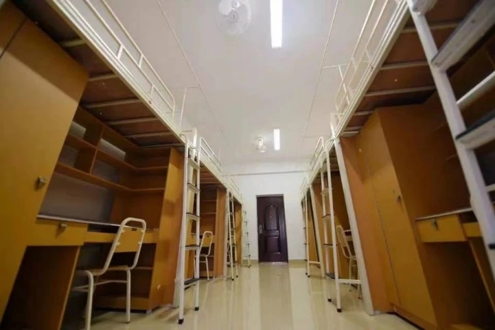 25-28栋为新建宿舍,6人间上床下桌,宿舍内有独立卫浴以及小阳台,配备洗衣机,每层楼会有公共阳台、生活间以及两个自习室;