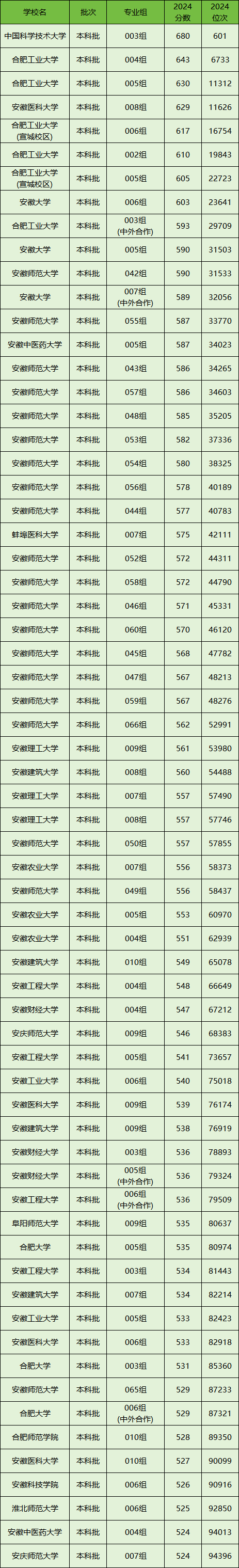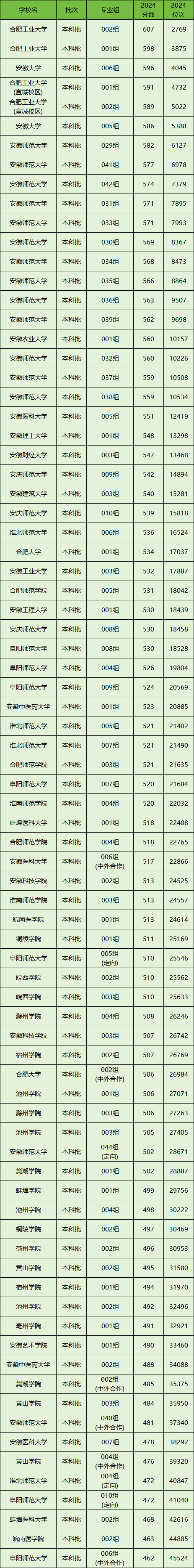 本文整理的是2024年安徽省所有公办本科大学录取分数线,供2025年的考生们参考。