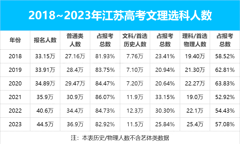 所以圆梦小编又整理了江苏省之前几年的选科对比情况。可以发现从2021年新高考实行开始,首选物理占比人数和首选历史人数的总和就开始逐渐减小,但是首选物理的报名人数仍然与历史类拉开了很大的差距。