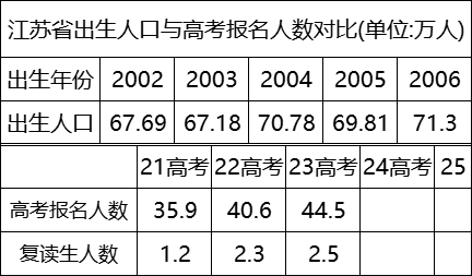 从以上数据当然不足以具体的预测从江苏的高考人数,我们还需要参考以下数据。