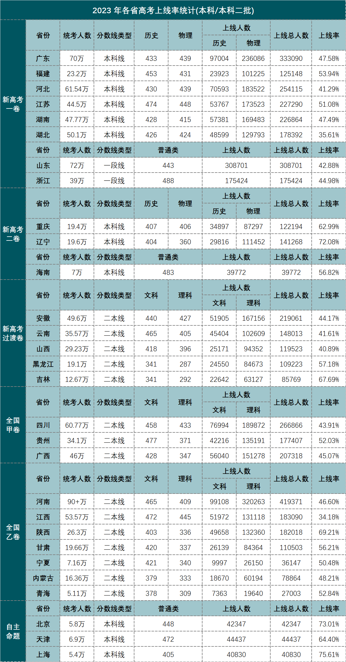 本科高职高专批:计划招生人数(含本科批)309997人,文科专科批上线人数为149688人、理科专科批上线人数298845人,2023年安徽高考文理科专科批(185分以上)上线总人数为448533人,结果造成专科批过线滑档人数将达138536人;