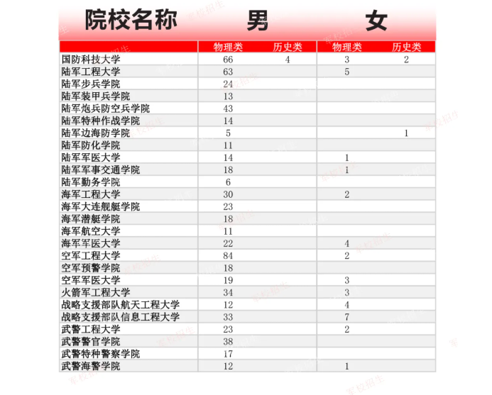 2024年在江苏招生的军校有26所,包含国防科技大学、陆军工程大学、陆军装甲兵学院、陆军边海防学院、陆军勤务学院、空军工程大学、武警工程大学、武警警官学院。以下是完整版的院校名单: