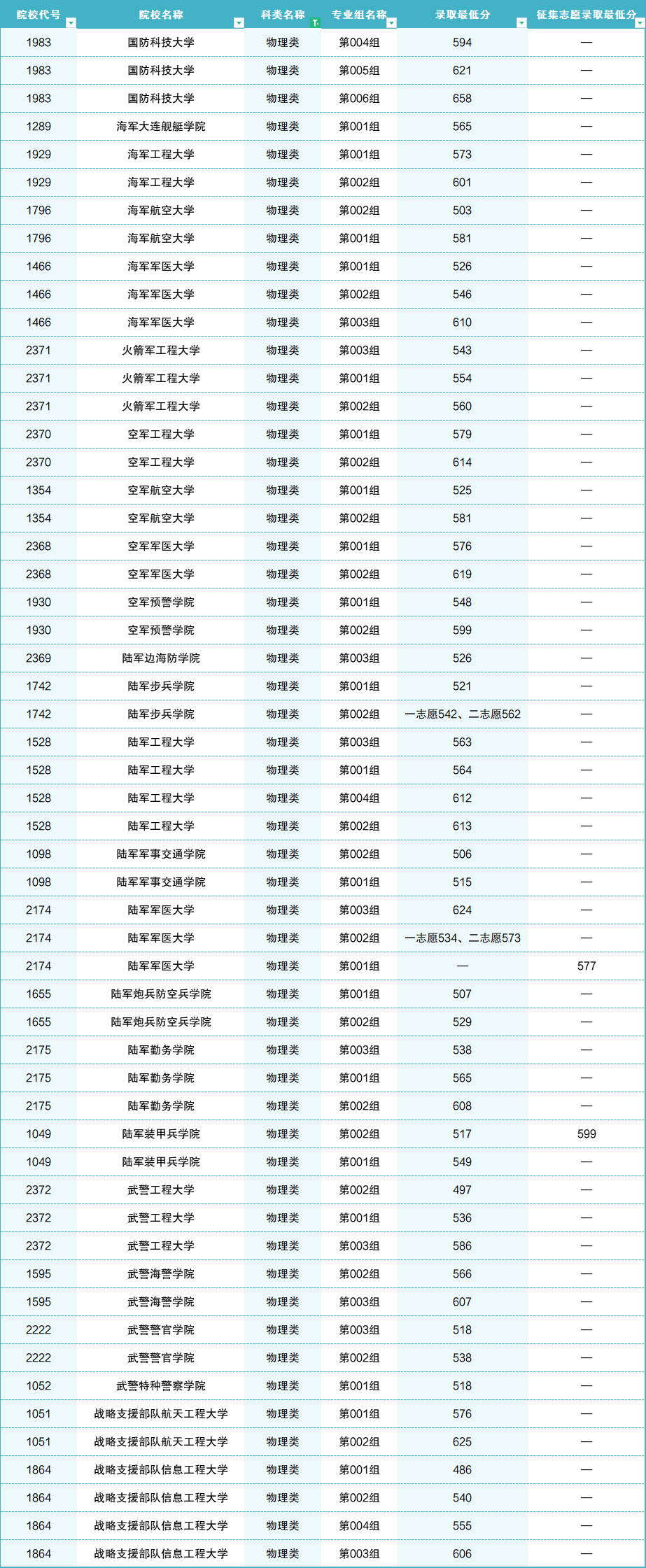 | 陆军边海防学院 | 历史类 | 第002组 | 597 |