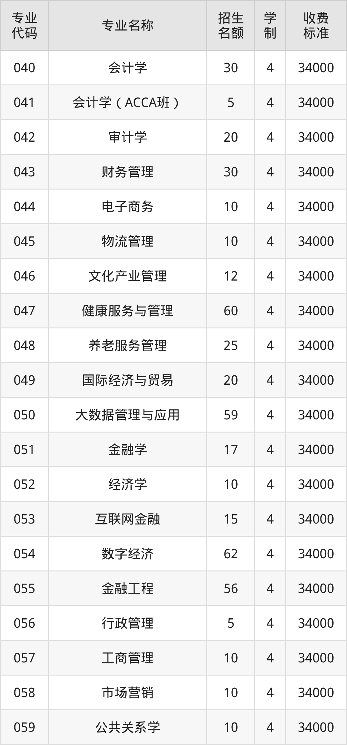 | 004 | 会计学(ACCA班) | 55 | 4 | 34000 |
