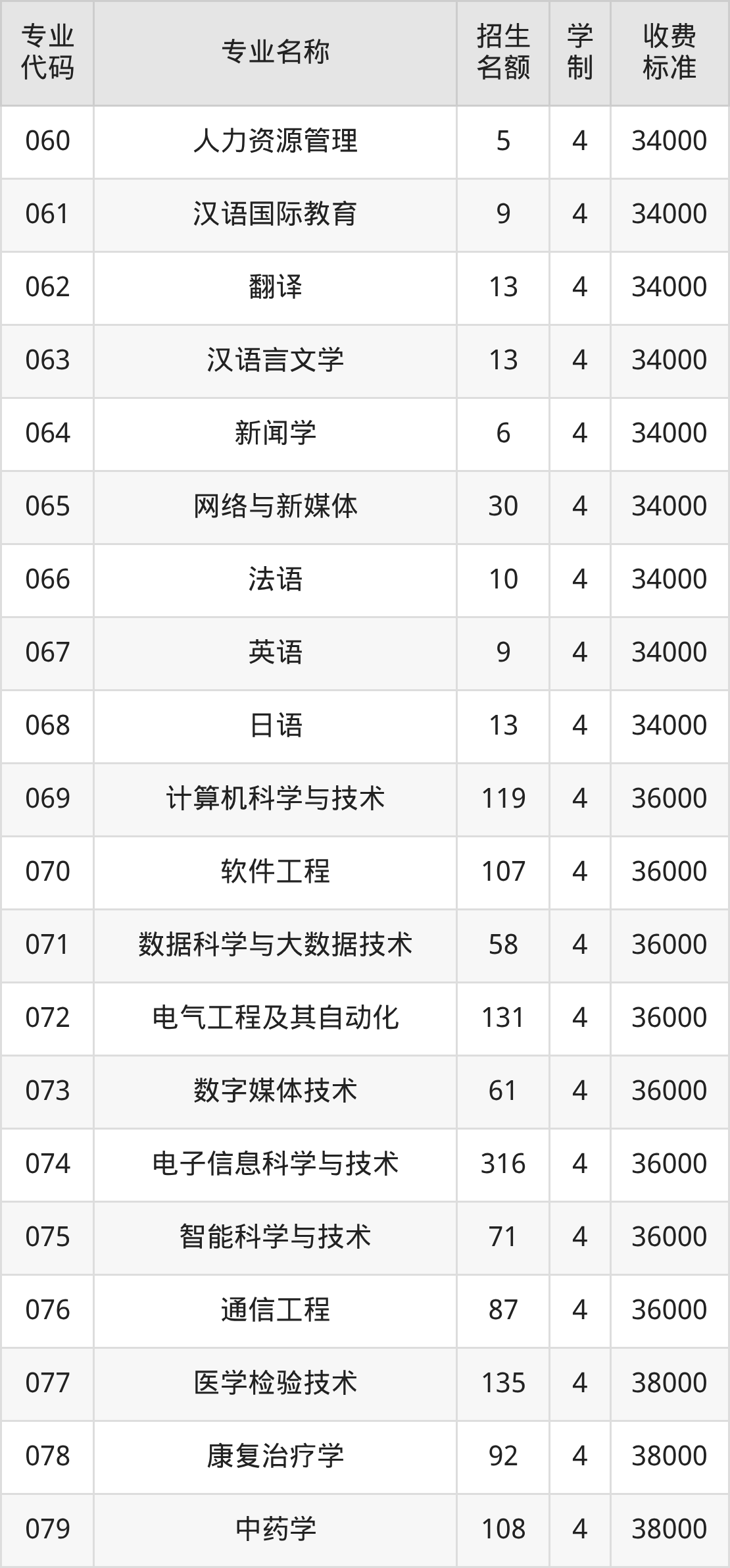 | 025 | 汉语国际教育 | 40 | 4 | 34000 |