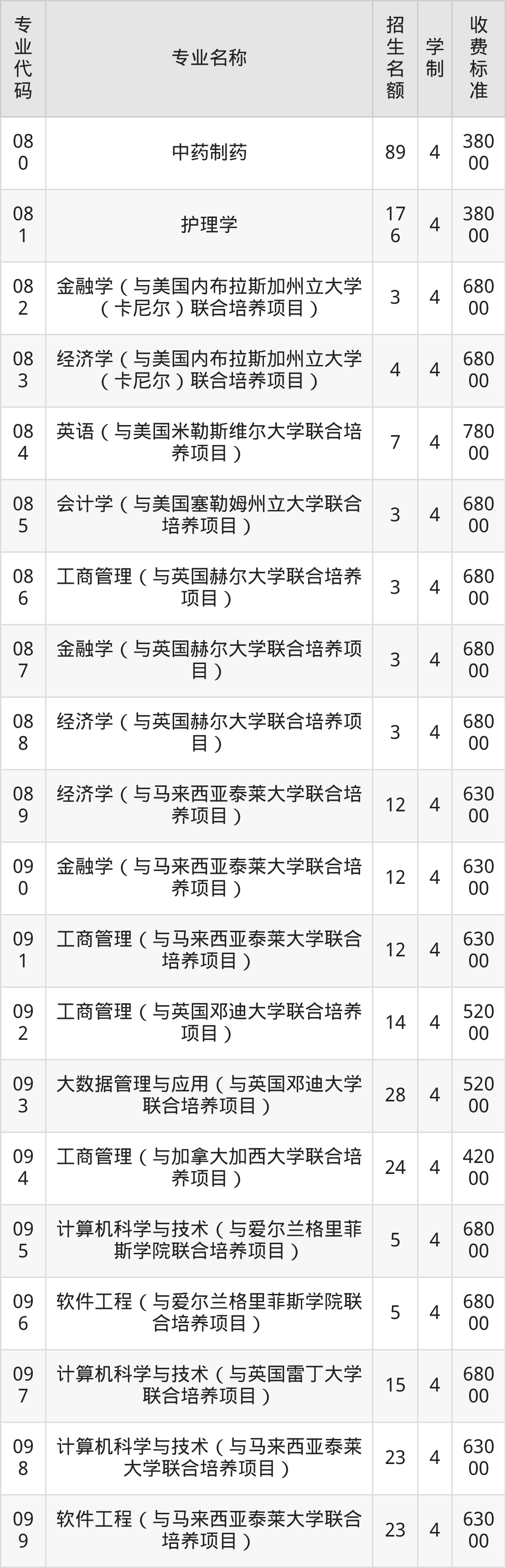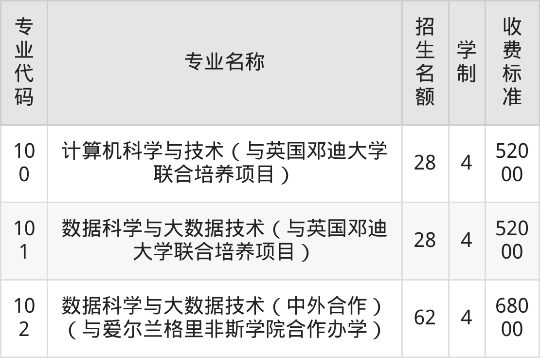 | 039 | 工商管理(与英国邓迪大学联合培养项目) | 14 | 4 | 52000 |