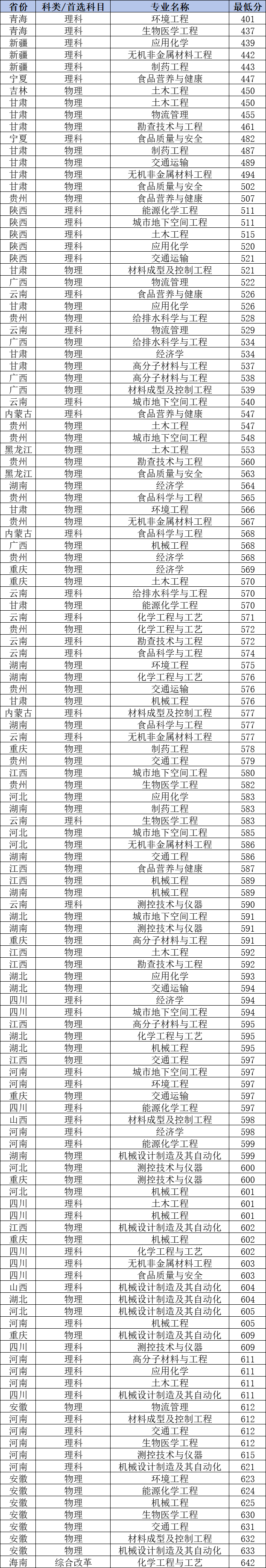 2024年合肥工业大学国家专项计划各省录取最低分一览表: